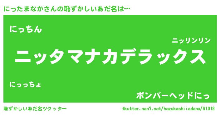 | ヘコむあだ名 | 『にったまなか(小並感)』『にっっぺ』 |