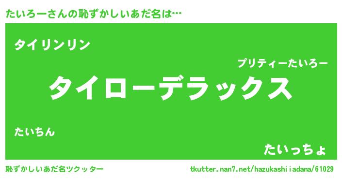 | ヒーロー風カッコイイあだ名 | 『サイバー戦士タイロー』『暗黒騎士タイ』 |