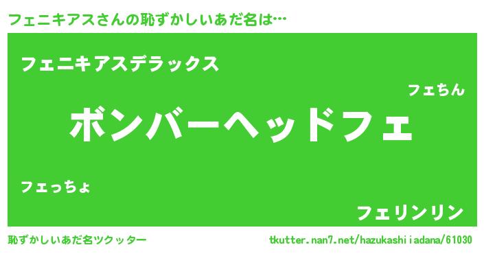 | ヘコむあだ名 | 『フェぷりん』『フェニキアス(笑)』 |