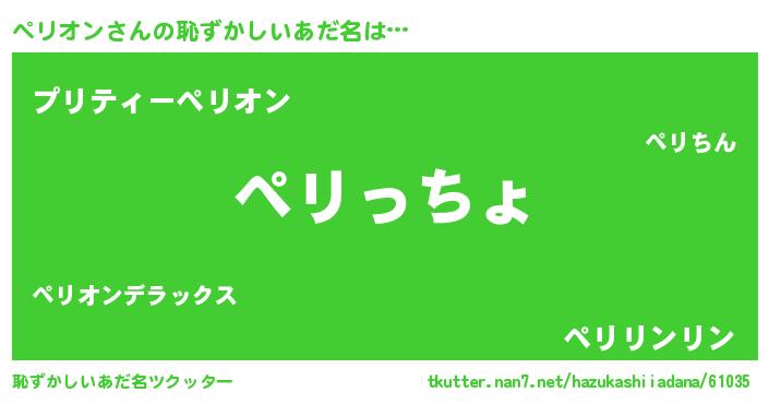 | ポケモン風あだ名 | 『ペリオダネ』『ペリチュウ』 |