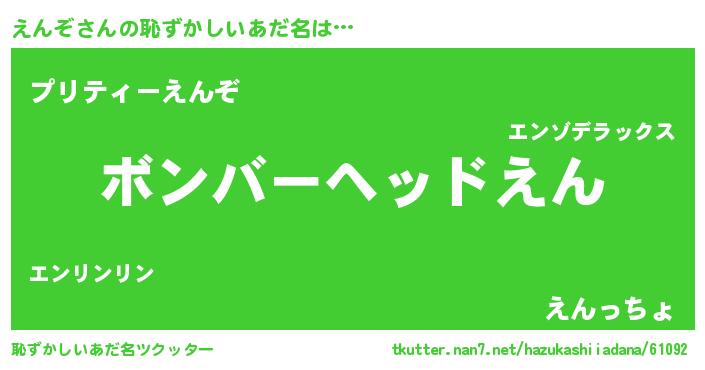 | 意味不明あだ名 | 『眠気覚ましガムえんぞ味』『自称えんぞ』 |