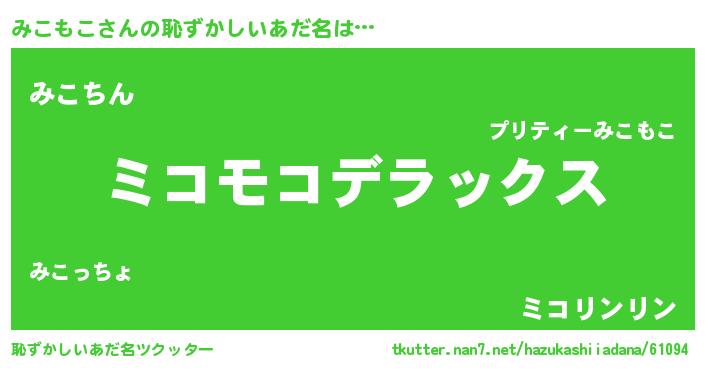 | 意味不明あだ名 | 『住所不定無職みこもこ(93歳)』 |