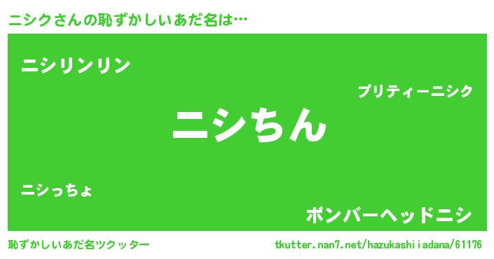 | 意味不明あだ名 | 『永久保存ニシク』『ペロリンニシク』 |