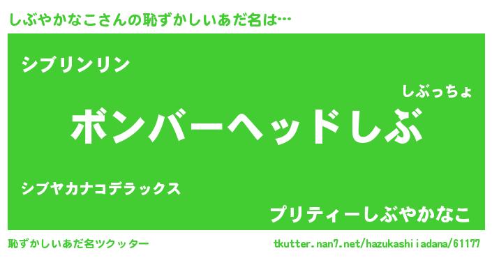 | 男性向けラノベタイトル風あだ名 | 『シブヤカナコスレイヤー』 |