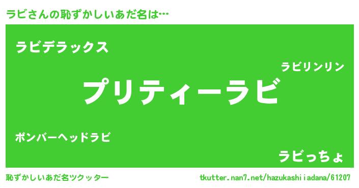 | ヘコむあだ名 | 『ラビにー』『なまこ酢』『ラビ太郎』 |