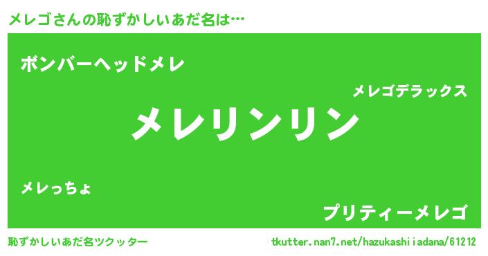 | 胡散臭い通販商品みたいなあだ名 | 『信頼と実績のサプリメント…その名も「メレゴ」』 |