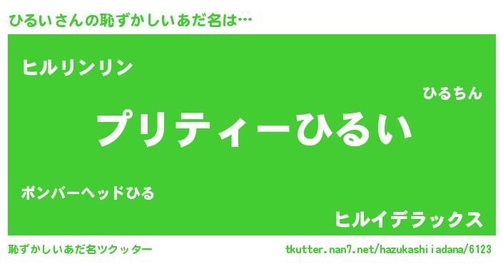 | ヒーロー風カッコイイあだ名 | 『スーパーヒルイ』『銀牙騎士ヒル』 |