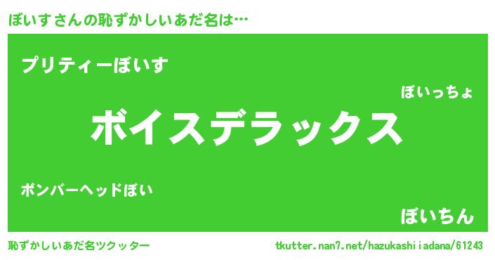 | 男性向けラノベタイトル風あだ名 | 『ボイススレイヤー』『魔弾の王とぼいす』 |
