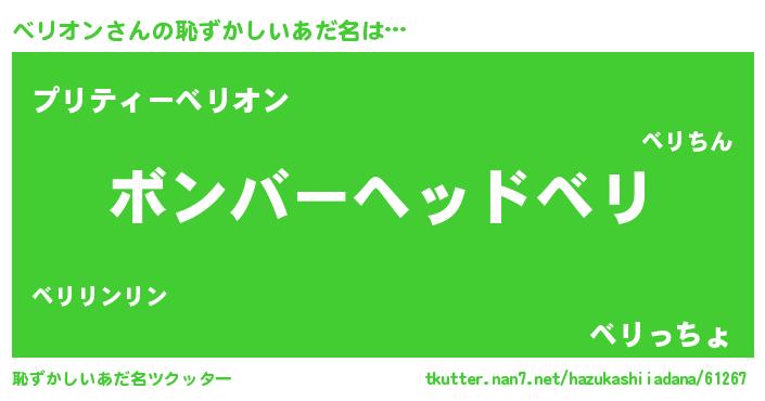 | 男性向けラノベタイトル風あだ名 | 『緋弾のベリオン』 |