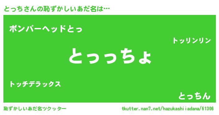 | ヒーロー風カッコイイあだ名 | 『ウルトラとっちマン』『ネオトッチ』 |