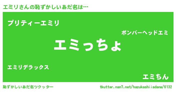 | ヘコむあだ名 | 『つくし』『エミふぇ~』『エミを』 |