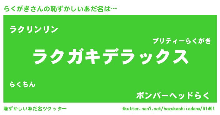 | ヘコむあだ名 | 『らくを』『らくにゅー』『つくし』 |