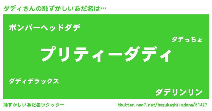 | ヘコむあだ名 | 『ダデっふぃ~』『ダデっ子』 |