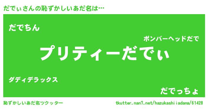 | 男性向けラノベタイトル風あだ名 | 『魔弾の王とだでぃ』『だでぃの憂鬱』 |