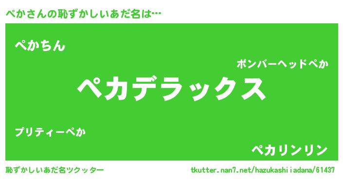 | 男性向けラノベタイトル風あだ名 | 『この素晴らしい世界にぺかを!』 |