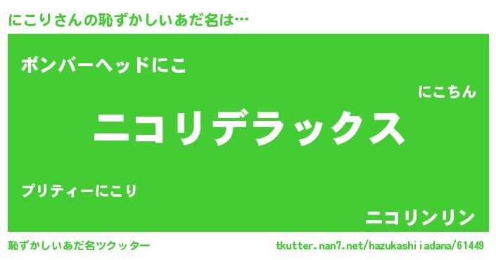 | ヒーロー風カッコイイあだ名 | 『サイバー戦士ニコリ』『魔戒騎士ニコ』 |