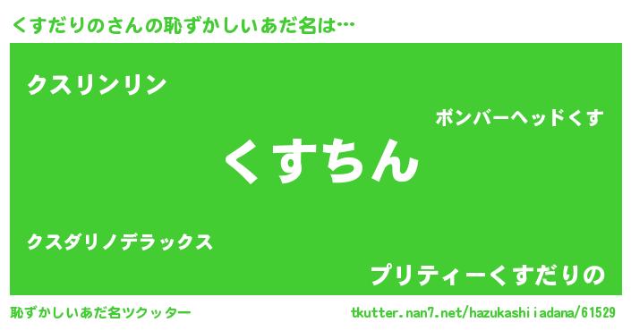 | 男性向けラノベタイトル風あだ名 | 『うちのくすだりのが世界を掌握している!』 |