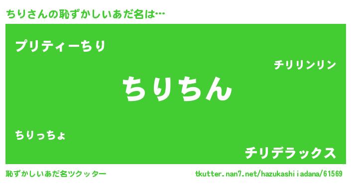 | 意味不明あだ名 | 『永久保存ちり』『住所不定無職ちり(7歳)』 |