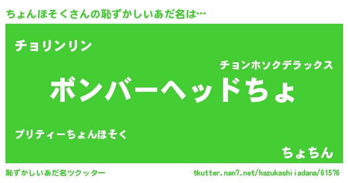 | 欧米人風あだ名 | 『ダニエルちょんほそく』 |