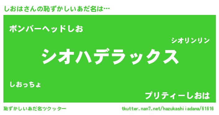 | 欧米人風あだ名 | 『しおは・ステッグマイヤー』 |