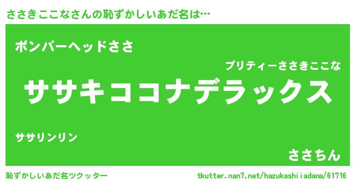 | ヒーロー風カッコイイあだ名 | 『最強戦士ササキココナ』『黄金騎士ササ』 |