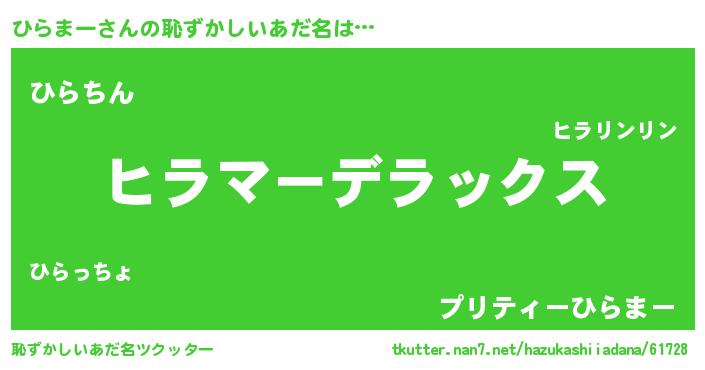 | 意味不明あだ名 | 『自称ひらまー』『永久保存ひらまー』 |