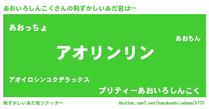 | 男性向けラノベタイトル風あだ名 | 『この素晴らしい世界にあおいろしんこくを!』 |