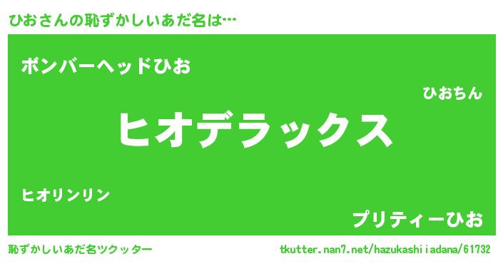 | ヘコむあだ名 | 『ひおにゅー』『ひお(小並感)』 |
