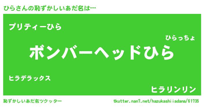 | ヒーロー風カッコイイあだ名 | 『正義の使者ひら』『スーパーヒラ』 |