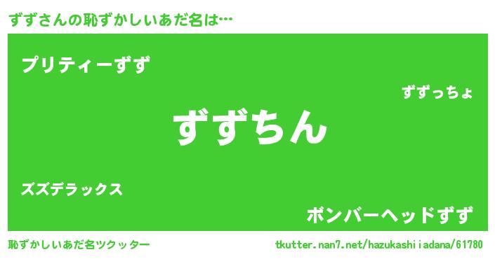 | ヘコむあだ名 | 『ずず(震え声)』『ずずもー』『豆乳』 |