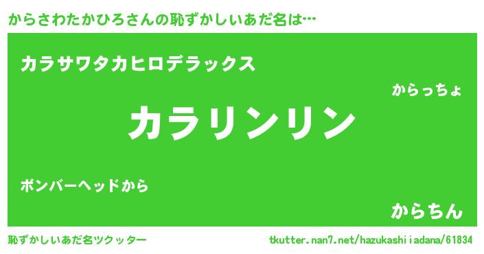 | ヘコむあだ名 | 『からお』『からさわたかひろ(小並感)』 |