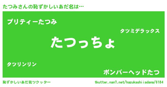 | 意味不明あだ名 | 『たつみフォーエバー』『ペロリンたつみ』 |