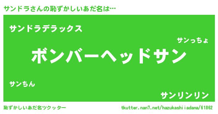| 女子向けラノベタイトル風あだ名 | 『サンドラ恋絵巻』『サンドラ様がみてる』 |