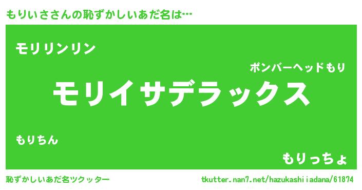 | 意味不明あだ名 | 『自称もりいさ』『もりいさフォーエバー』 |