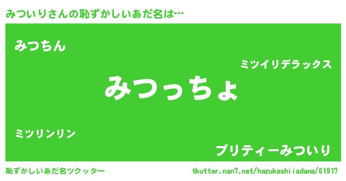 | 意味不明あだ名 | 『みついりフォーエバー』『自称みついり』 |