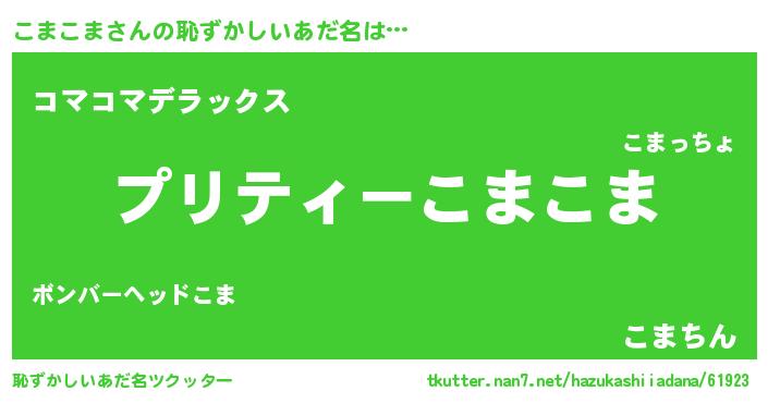 | 意味不明あだ名 | 『ペロリンこまこま』『自称こまこま』 |