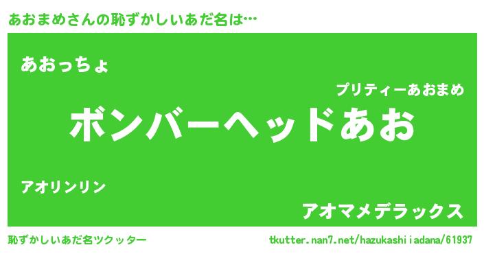 | ヒーロー風カッコイイあだ名 | 『天空の使者あおまめ』『仮面アオダー』 |