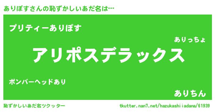 | 意味不明あだ名 | 『自称ありぽす』『ペロリンありぽす』 |