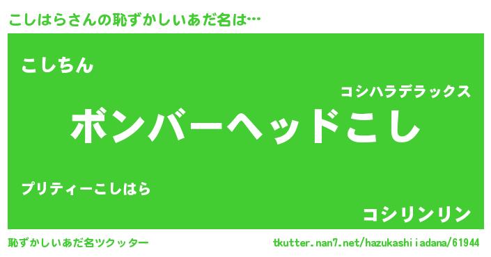 | ヒーロー風カッコイイあだ名 | 『愛の使者こしはら』『ネオコシハラ』 |