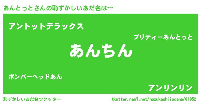 | 意味不明あだ名 | 『永久保存あんとっと』『自称あんとっと』 |