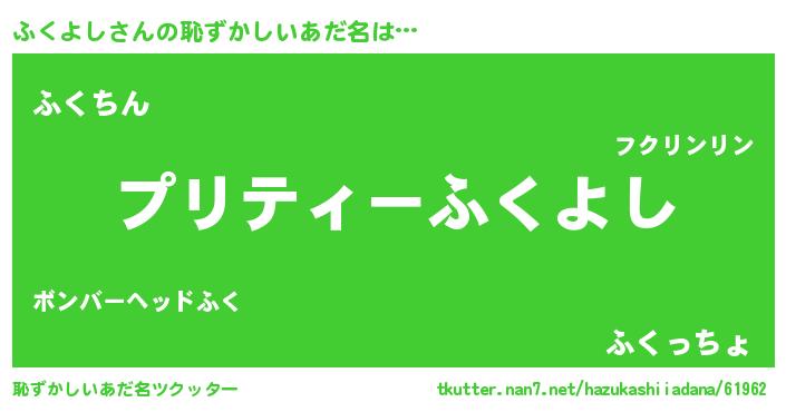 | 男性向けラノベタイトル風あだ名 | 『ふくよしの憂鬱』 |