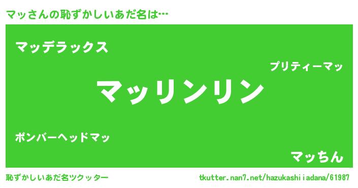 | ヘコむあだ名 | 『マッ太郎』『マッ(笑)』『つくし』 |