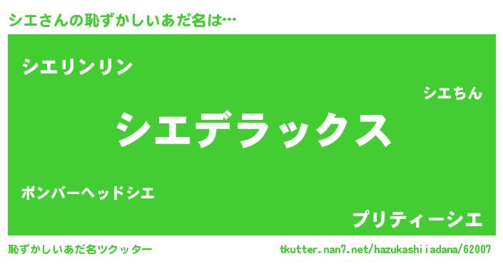 | ヒーロー風カッコイイあだ名 | 『サイバー戦士シエ』『魔戒騎士シエ』 |