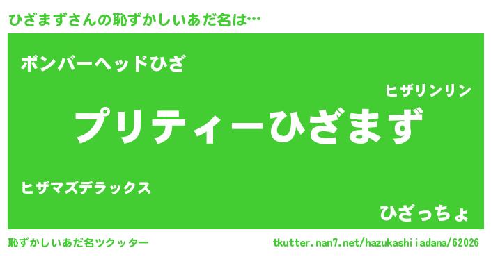| 男性向けラノベタイトル風あだ名 | 『ヒザマズアートオンライン』 |