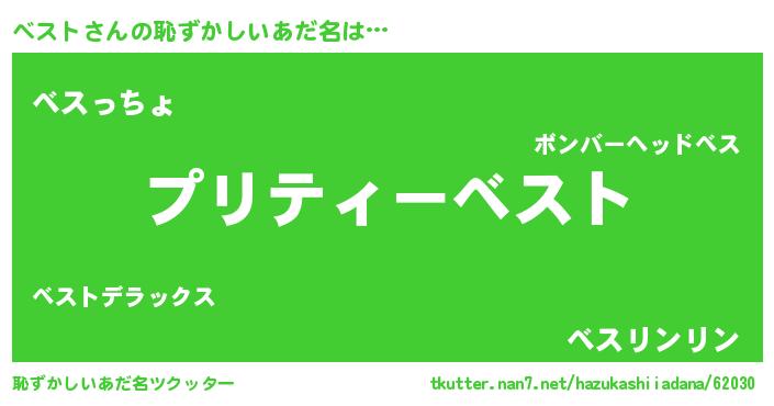 | 男性向けラノベタイトル風あだ名 | 『はたらくベストさま!』『緋弾のベスト』 |