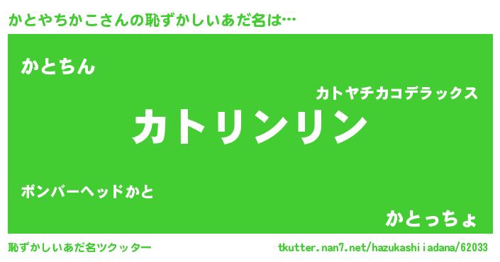 | 意味不明あだ名 | 『とにかく怪しいかとやちかこ』 |