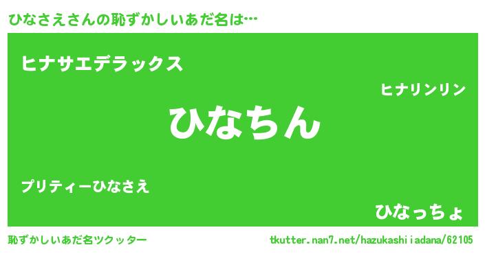 | 意味不明あだ名 | 『住所不定無職ひなさえ(2歳)』 |
