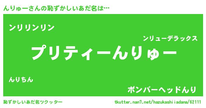| ヘコむあだ名 | 『んりにゅー』『んりを』『豆乳』 |