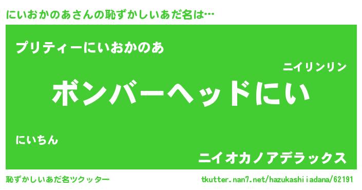 | 意味不明あだ名 | 『住所不定無職にいおかのあ(59歳)』 |