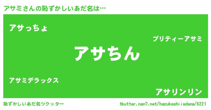 | 欧米人風あだ名 | 『アサミ・ステッグマイヤー』 |